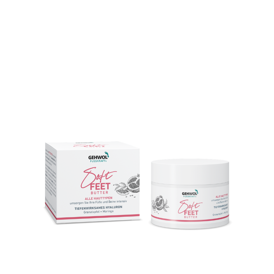 Kuiva iho – Gehwol Soft Feet Butter tarjoaa intensiivistä hoitoa ja pitkäkestoista kosteutusta kuiville jaloille. Tilaa Elcos Medicalilta.